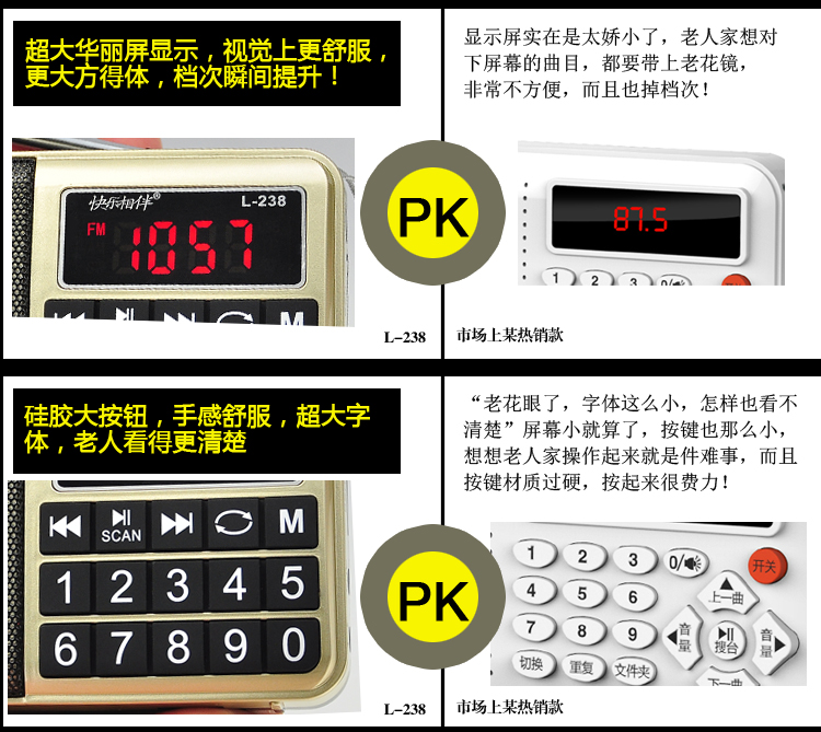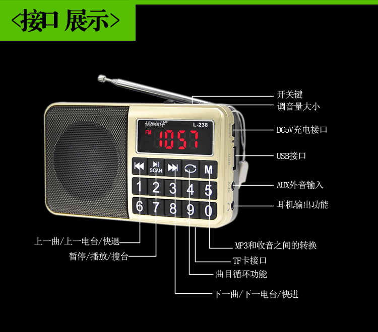 超硅膠大按鍵,超強(qiáng)的收音效果,高保真功放,音質(zhì)非凡,